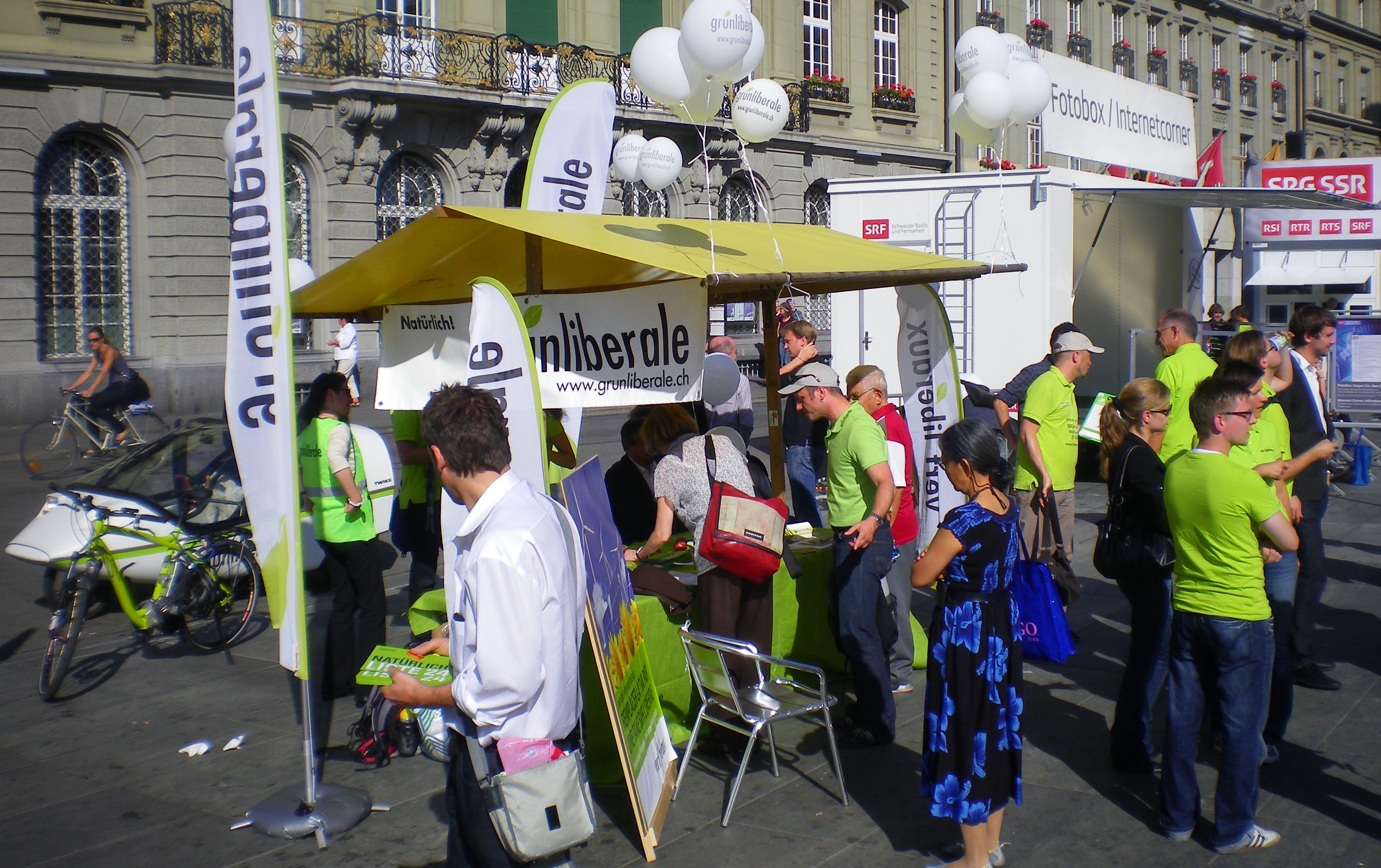 Zwar soll dies kein politischer Blog sein, aber mein Engagement bei den Grünliberalen darf doch kurz erwähnt werden. Heute konnten wir unsere Partei auf dem Bundesplatz und im Radio/TV präsentieren. Als letzte von 10 Parteien, welche die letzten beiden Wochen täglich vorgestellt wurden.