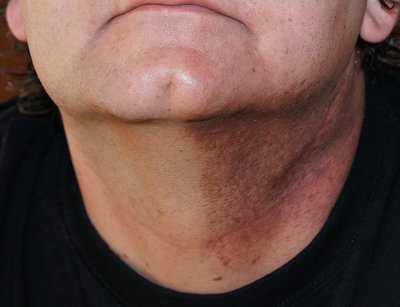 Am 10. August, beim monatlichen Besuch beim Hausarzt (Desensibilisierung Heuschnupfen), war diese scheinbare EntzĂĽndung immer noch gleich gross und mein Hausarzt vereinbarte sofort einen Termin beim Chirurgen. Bereits am 18. August wurde ich im Zieglerspital ambulant operiert, ein ca. 8cm grosser Schnitt am Hals. Nach dem Erwachen aus der Vollnarkose meinte der Chirurg, dass es sich wohl um eine Zyste handelte.